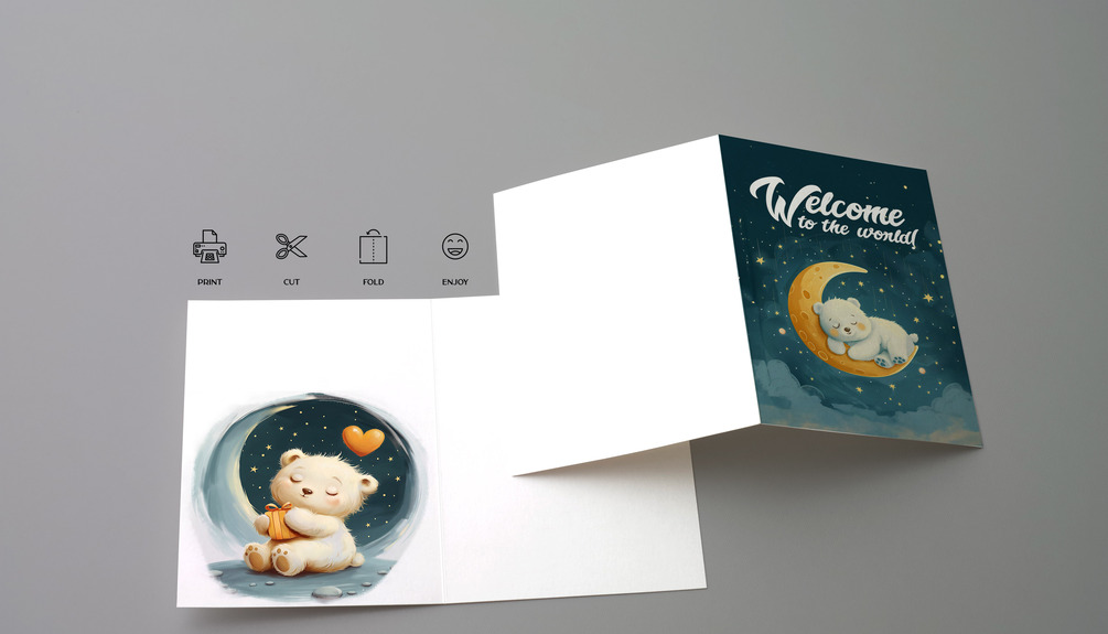 Share the joy of this precious milestone with friends and family using a card that captures the magic of a new beginning. Download, print, cut, and send your warmest welcome to the newest member of the family.